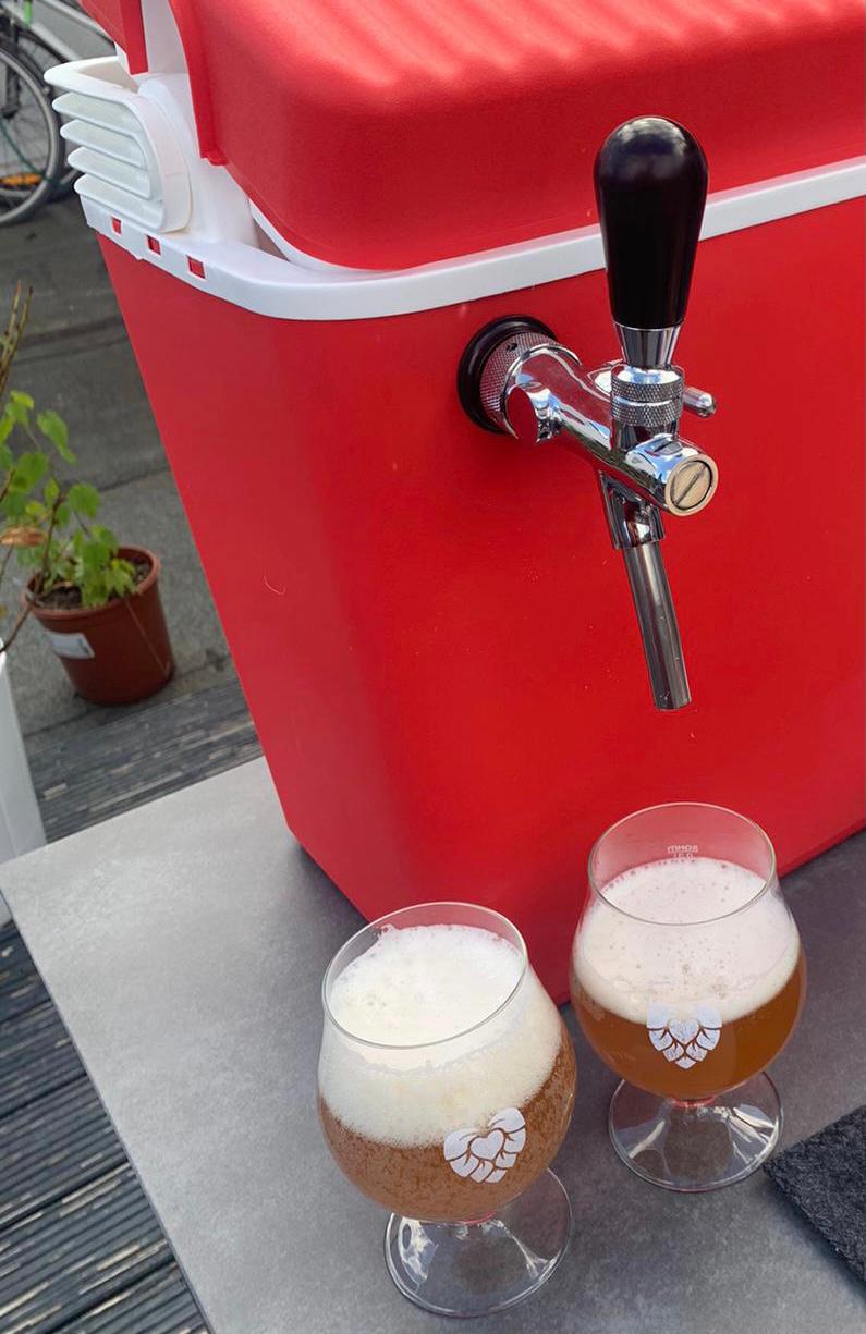 Hi ,interessante Zapfanlage. Hast du innen ein 2 l Keg mit CO2 Patrone und Bierschlauch oder wie funktioniert das?