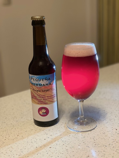 Ein ‚Purple Lager’, gebraut mit südamerikanischem lila Mais (Maiz morado): spektakuläre Farbe in einem eher gefälligen und gut trinkbaren Lagerbier.