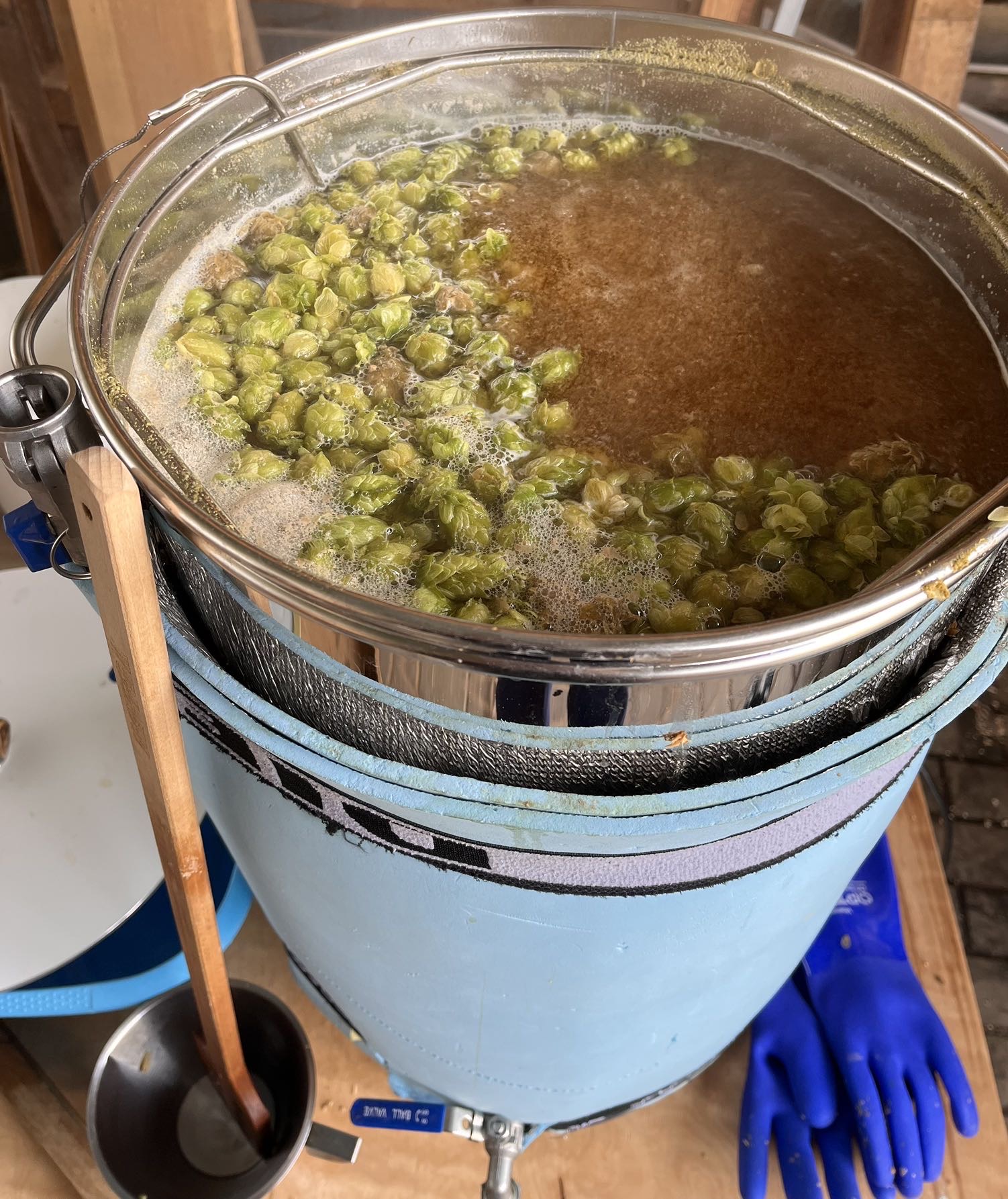 Kein Grünhopfenbier im klassischen Sinne, da die Dolden zuvor wenige Tage an der Luft vorgetrocknet und dann eingeschweißt und eingefroren wurden. Der Großteil der Bittere wird klassisch mit Pellets erzeugt, so dass der unbekannte Alphasäuregehalt der Dolden nur einen geringen Anteil an den Gesamt-IBU einnimmt. Dafür ist jedoch das Hopfenaroma im fertigen Bier schön ausgeprägt. Das Bier wird wohl auch mit anderen Malzsorten gut funktionieren und ich werde das Hopfungssschema wohl auch bald mit anderen Malzen und Hopfensorten probieren. Dann auch mit weniger Stammwürze, da meine Annahme der Alphasäure wohl nicht extrem weit daneben liegen dürfte und ich Angst hatte, dass ein Bier mit weniger Stammwürze evtl. nicht mit der Bittere harmoniert. Ich habe mit 1/5 von Hopfenpellets der gleichen Sorte gerechnet und habe das Rezept auf 25 IBU ausgelegt. Bin kein Biersomeelier, denke aber, dass es gut 28-32-IBU hat und komme beim nachrechnen damit auf etwa 0,9-1,0 alpha anstatt der gerechneten 0,8%.Unter Druck vergoren im Fermzilla, daher kein Zusatz von Zucker zur Nachgärung.Die Würze wurde bei ca. 10°C angestellt und dann langsam auf 11°C kommen lassen. Nach etwa 2 Tagen wurde die Temperatur auf 12°C kommen lassen. Nach etwa einer Woche wurde dann auf 14°C erhöht. (Alles im temperaturgesteuerten Gärschrank). Es wurde mit 2 x 200ml Z001 angestellt.