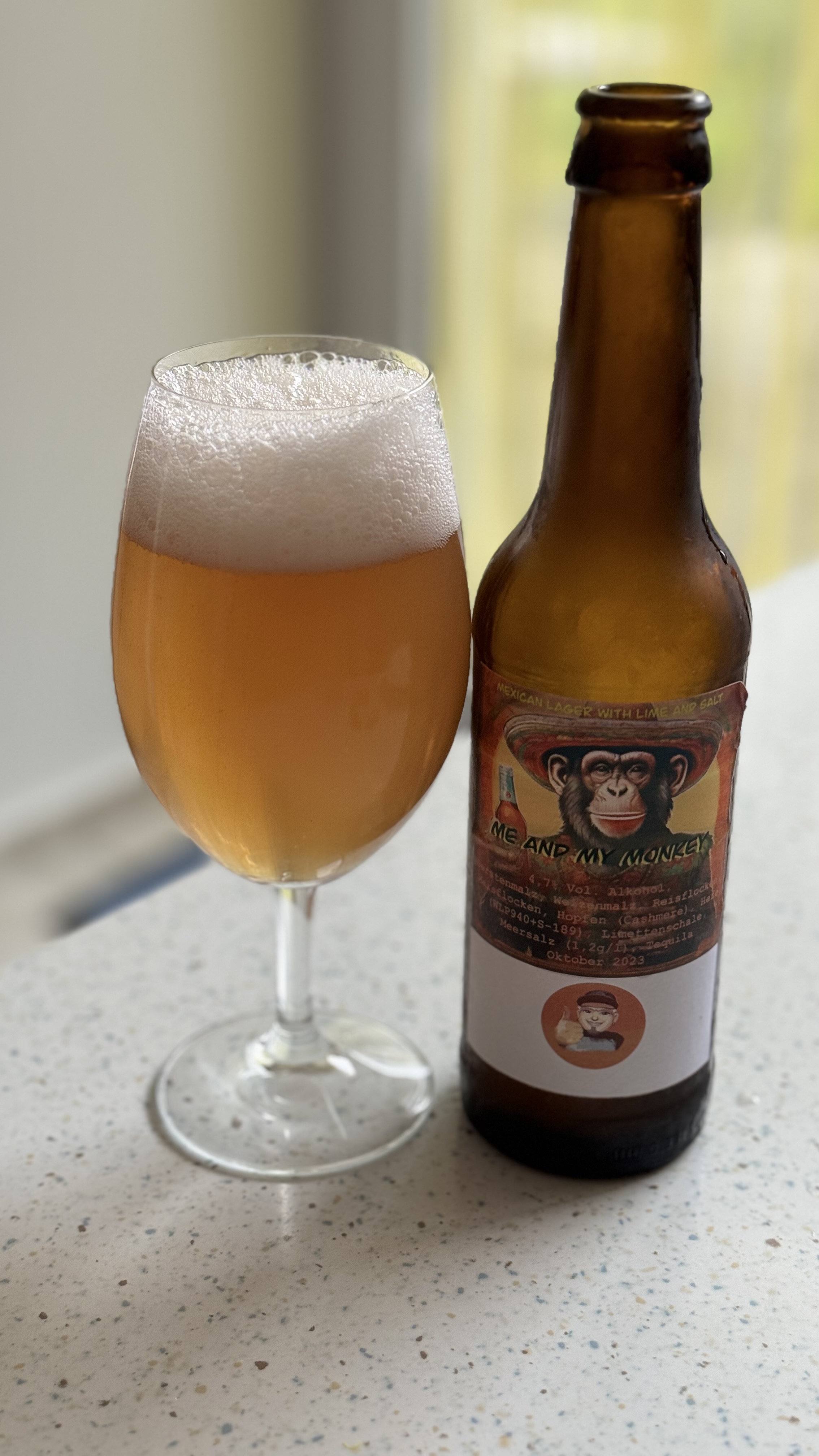 Beim ersten Zutatenroulette der Karlsruher Hobbybrauer habe ich Salz als Spezialzutat gezogen , daher habe ich mich für ein Mexican Lime & Salt Lager entschieden.Ich habe die Schalen von 8 Bio-Limetten abgerieben und mit 30g Meersalz in ca 150ml Tequila eingelegt für 10 Tage. Den Auszug habe ich dann nach der Hauptgärung zusammen mit dem Stopfhopfen zugegeben. Diese Menge auf die 28l Bier waren recht intensiv, hat aber fast allen gut geschmeckt.