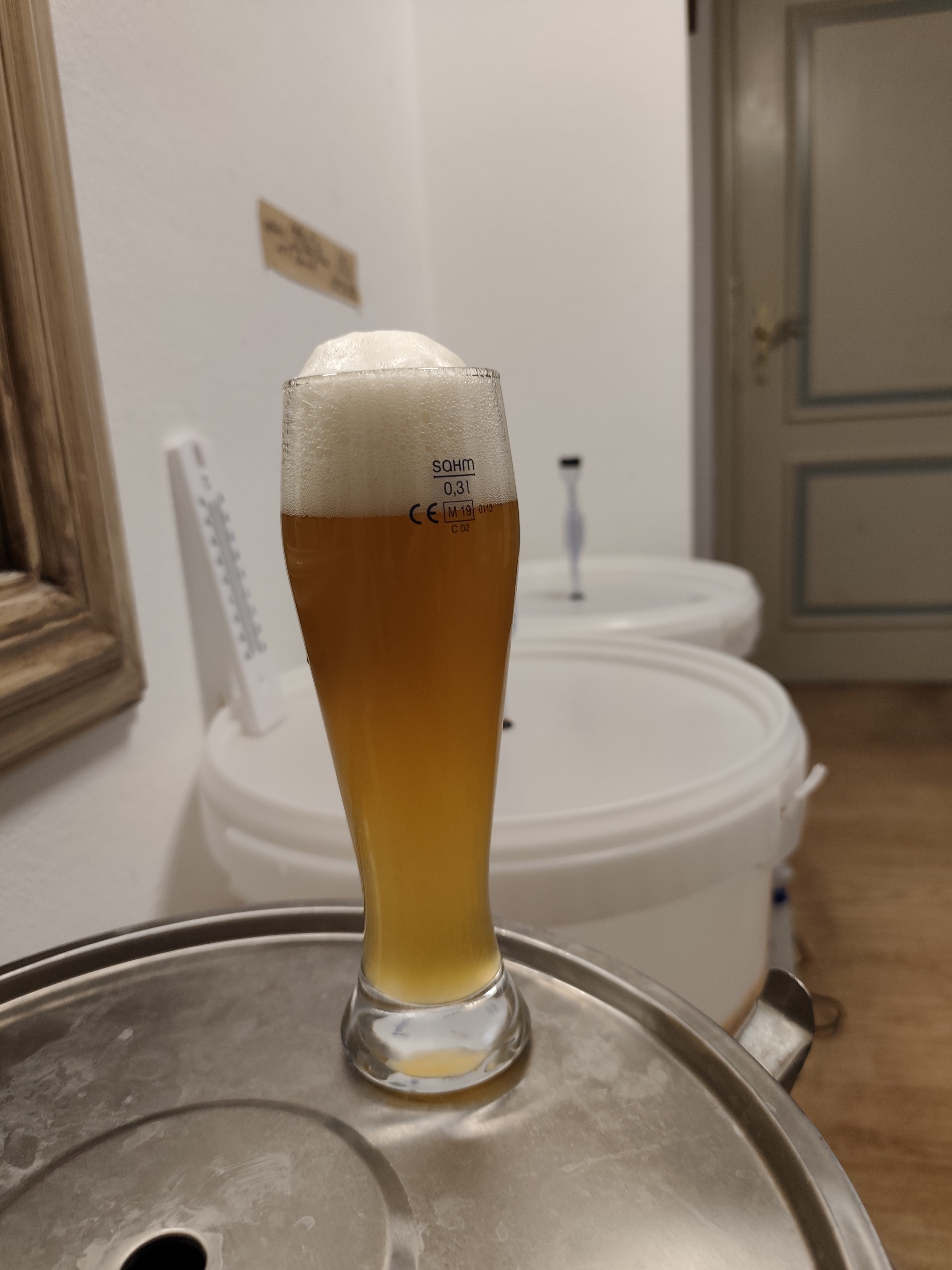 Die Gärung lief wie folgt ab: Anstellen und mäßig belüften, Underpitching ist hier angesagt - diese Hefe kann ruhig etwas gestresst werden um das entsprechende Aroma zu bilden - also bis 0.5g pro L völlig ausreichend.